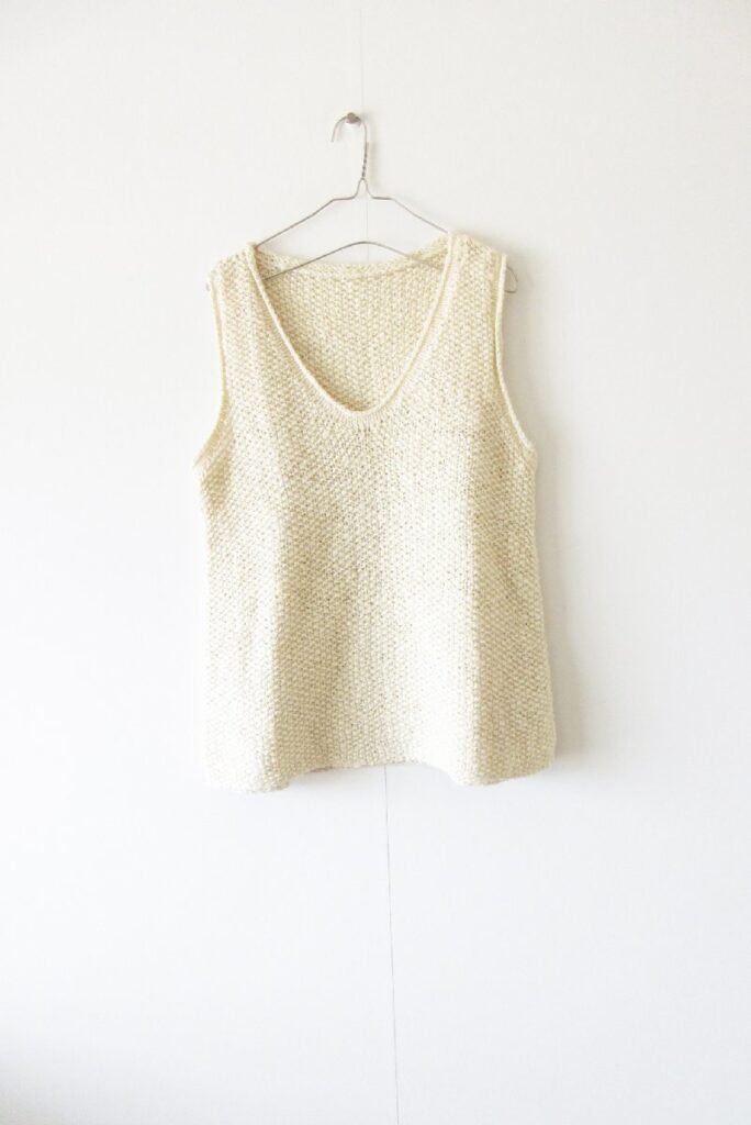 手紡き 手編みのニット プルオーバーベスト IVORYをお買取りさせていただきました。
