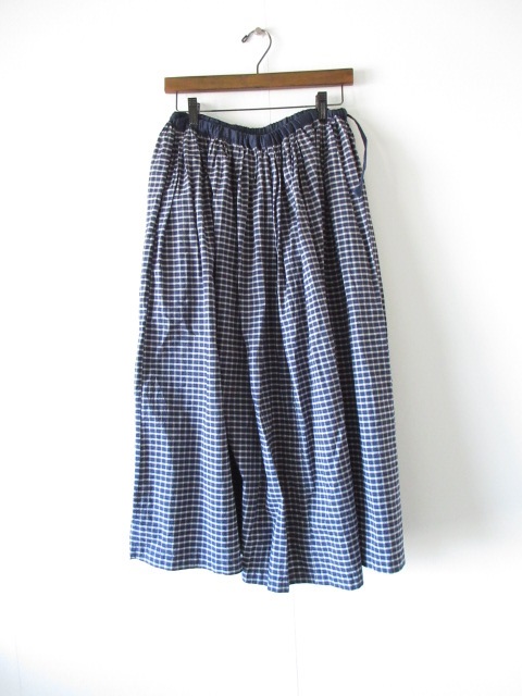 Gauze# (g):コットンリネン チェックフレアイージースカート F NAVY