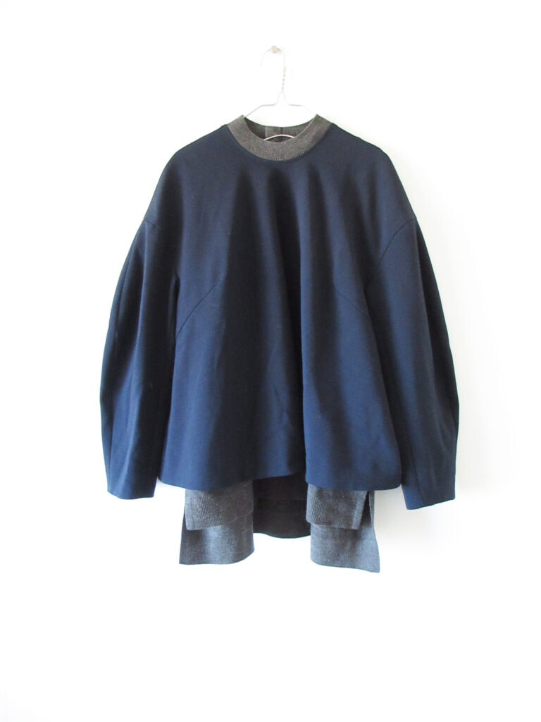 ENFOLD:300GA230-1400 KNIT-LAYERED PULLOVER 38 NAVY×GRAY 2023AW