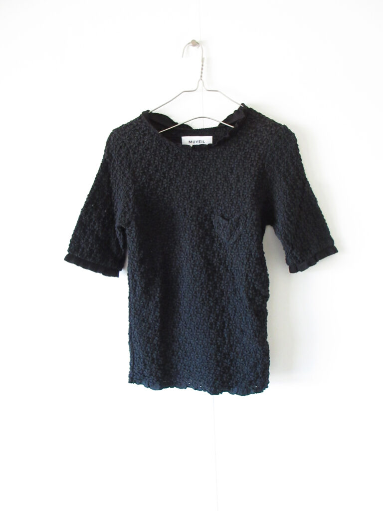 MUVEIL:MA251UTS008 ハートパッチトップス 36 BLACK 2025SS