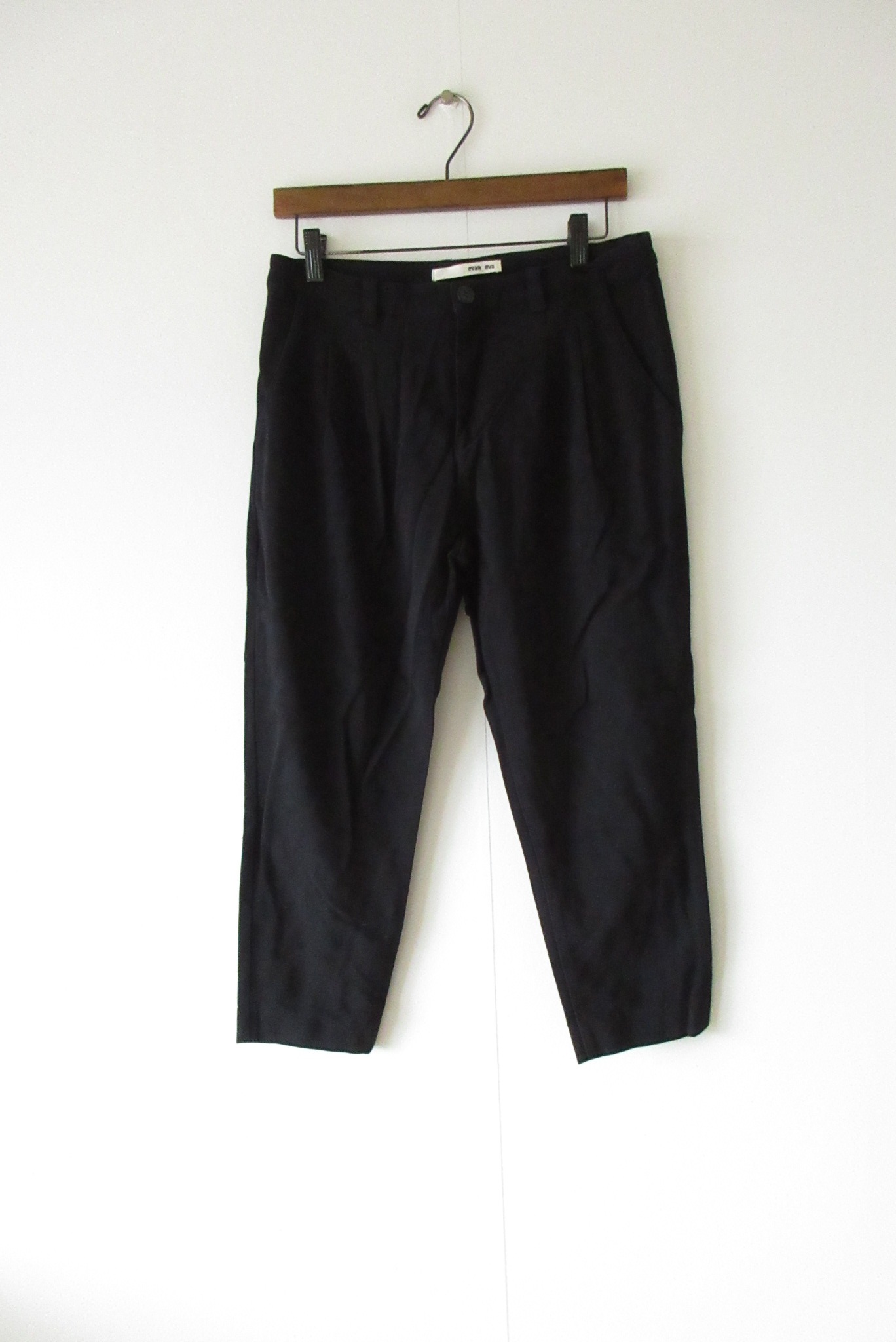 evam eva:コットンウールテーパードクロップドパンツ 1 BLACK