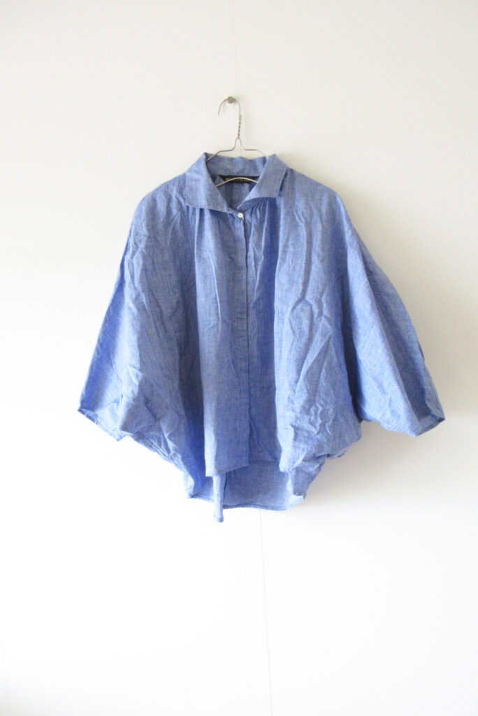 mizuiro ind:コットンリネン ドルマンスリーブダンガリーシャツ L.BLUE
