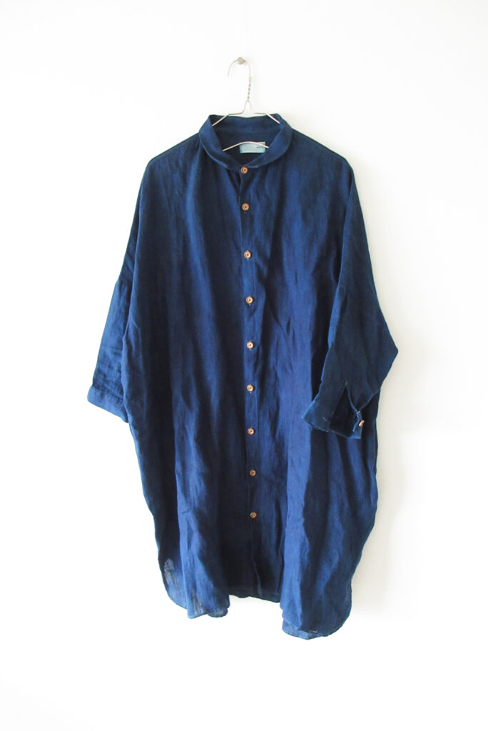 HUIS:製品染め リネンロングシャツ INDIGO
