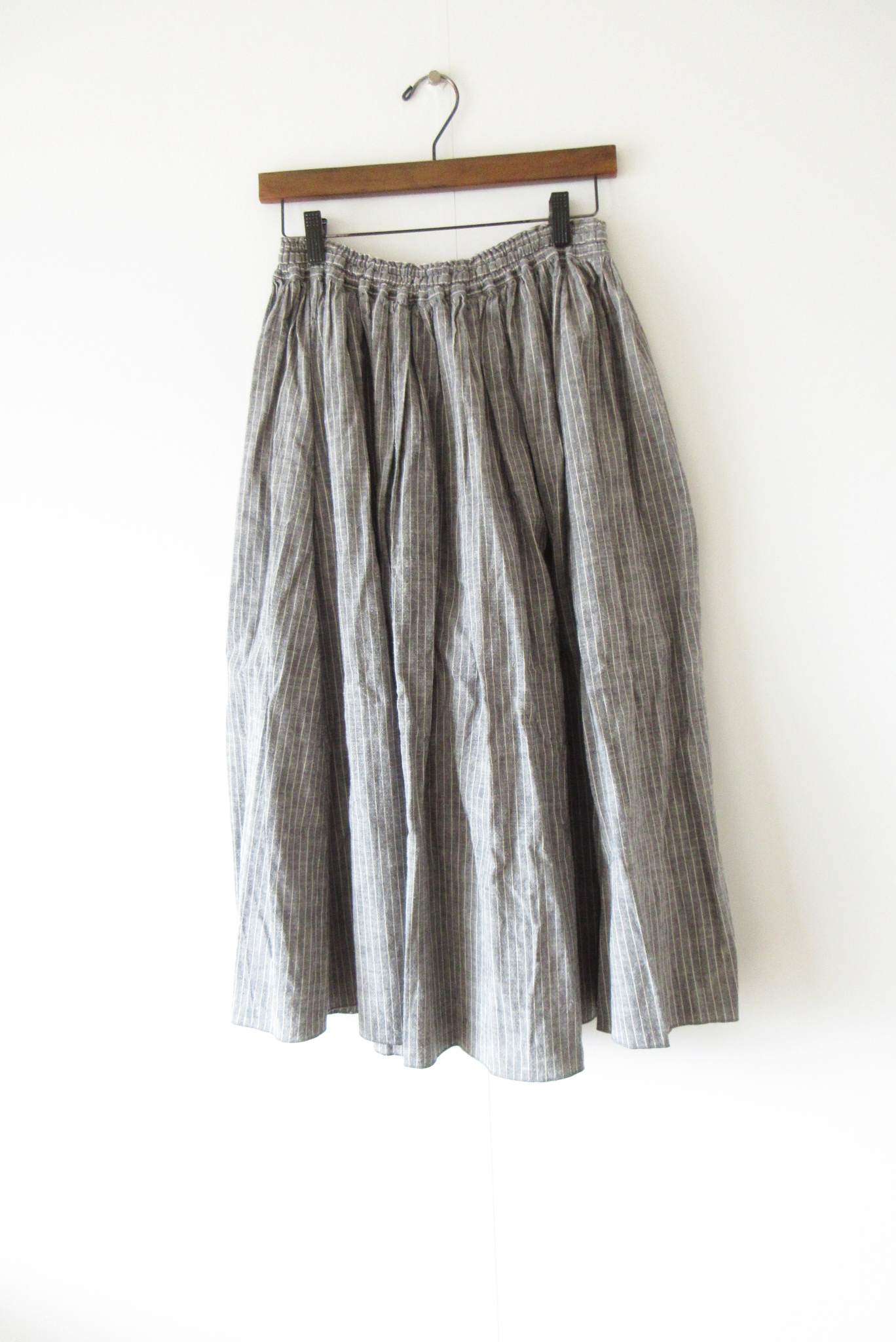 HUIS:U402-0226 シーチングコットンロングスカート F GRAY STRIPE