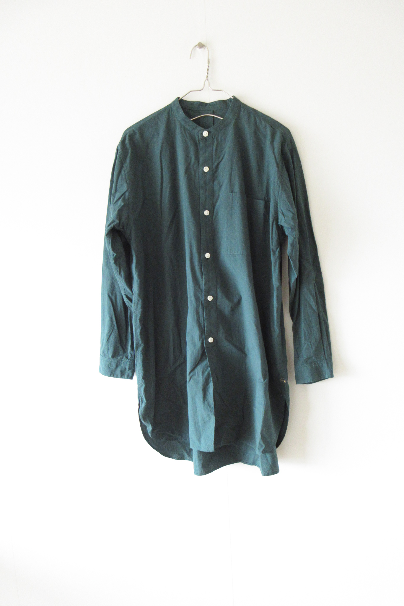 HUIS:007-1802 コードレーンバンドカラーロングシャツ F GREEN