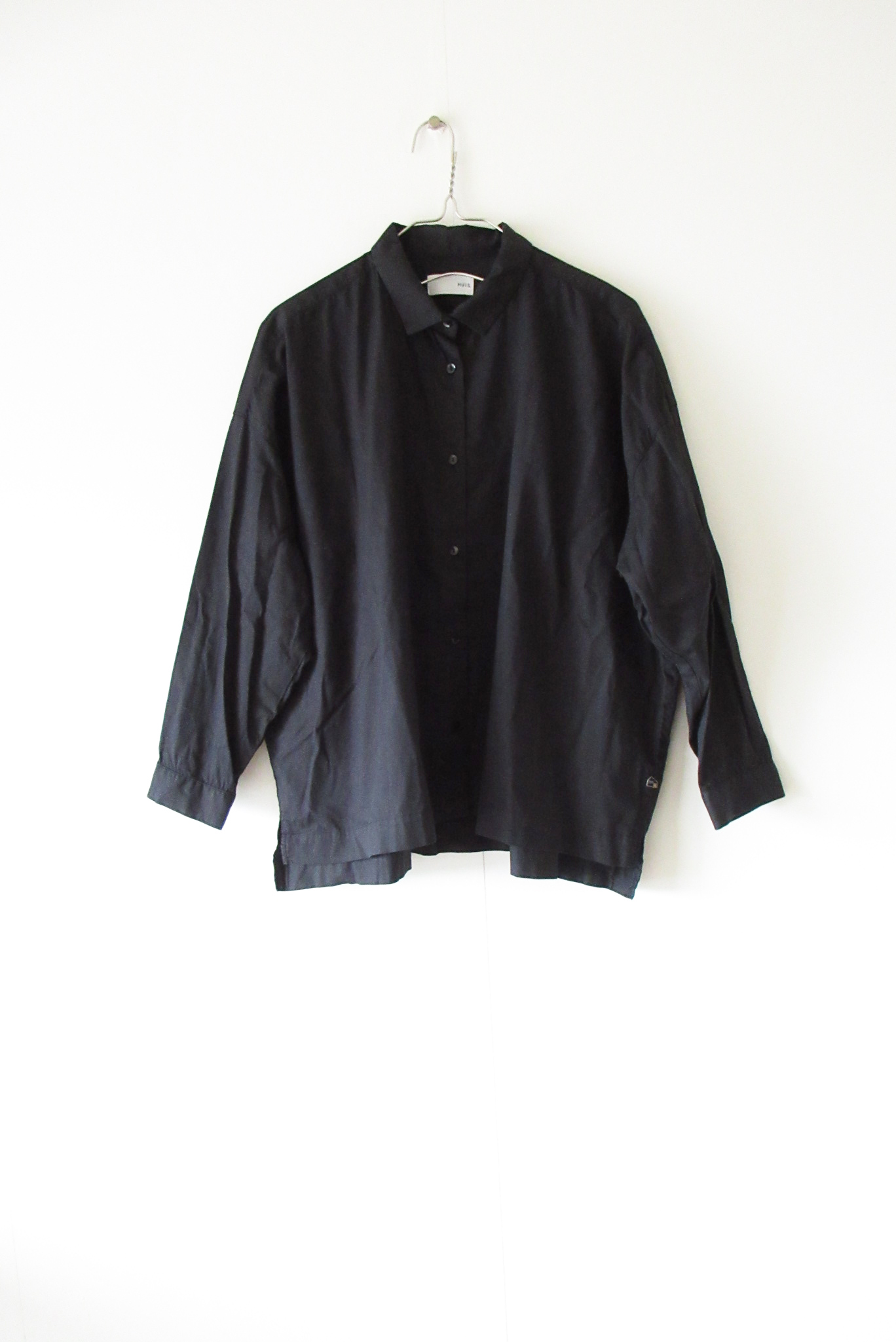 HUIS:U105-KT02 オーガニックコットンライトオックスワイドブラウス F BLACK