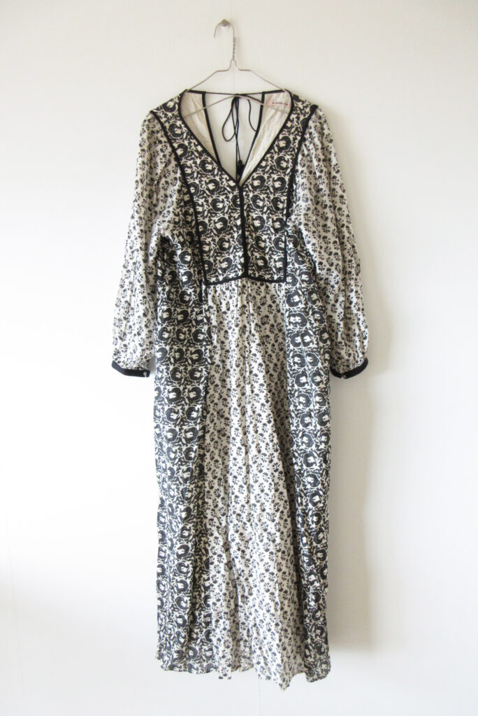 ne Quittez pas:コットンジャガードコンビプリントギャザードレス M BLACK 2023