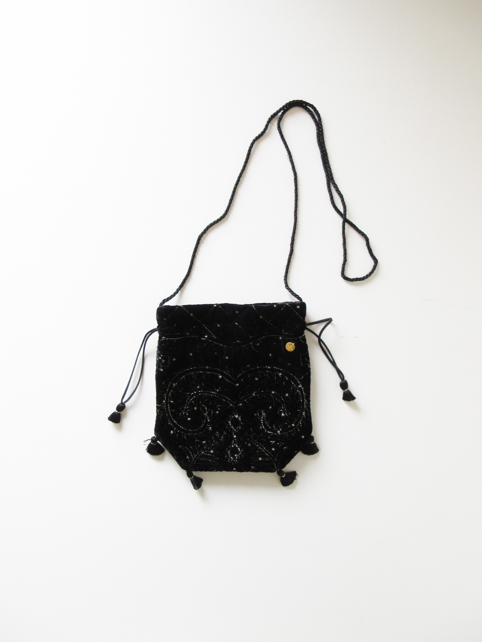 ne Quittez pas:Velvet Embroidery Drawstring Bag BLACK×GOLD 2024